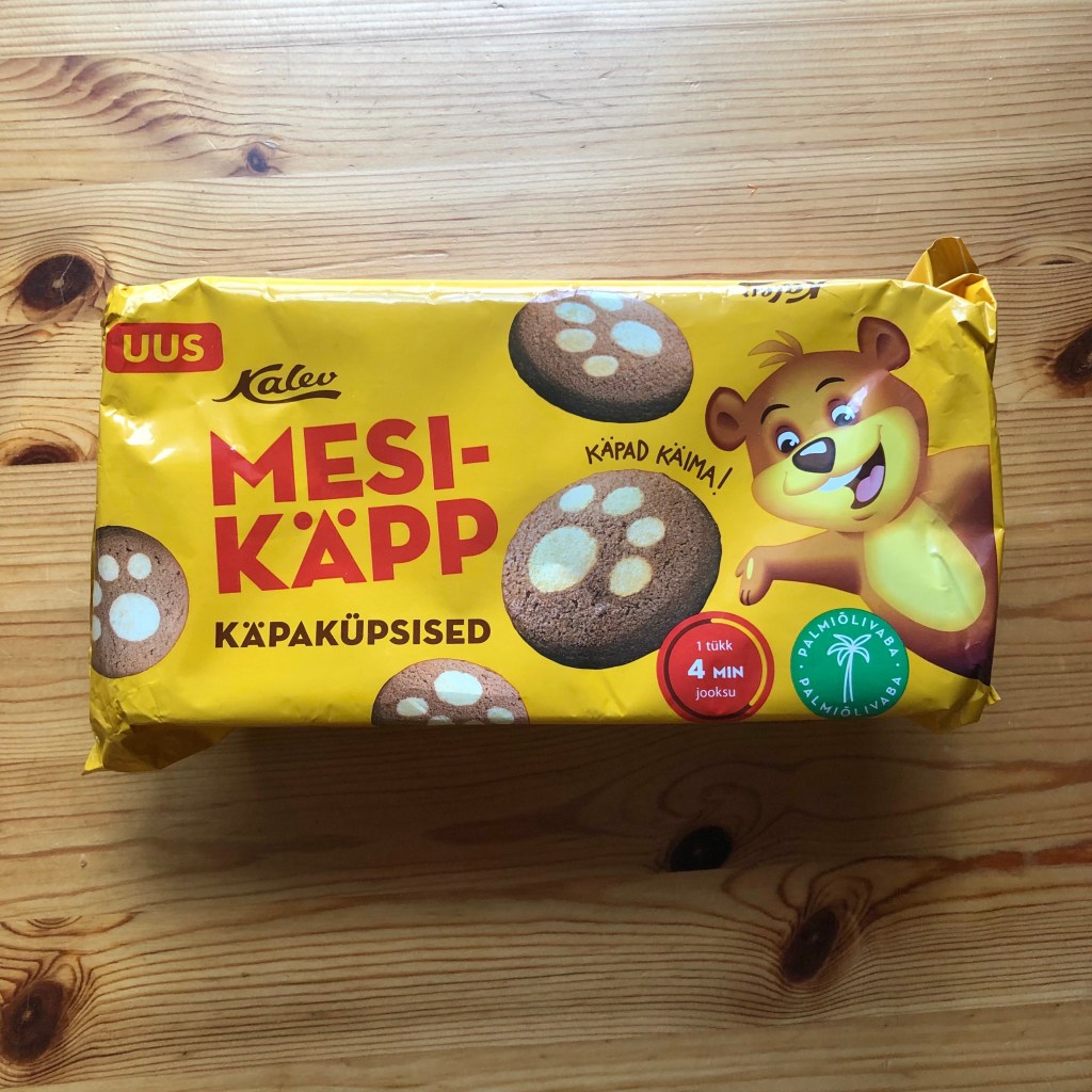 Those generous fans of the Bestiary in Latvia have sent me a wonderful assortment of Estonian biscuits to try, all of them in the Mesi-Käpp (“Honey Pot”) range from Kalev, a chocolate manufacturer popular in the Baltic States. These Käpaküpsised immediately caught my eye. It’s hard to translate the name with the usual internet tools; the nearest I can get to it is some kind of cover or cap and even the donors were unsure what ‘1 tükk 4 min jooksu’ meant (an instruction to microwave them perhaps?) though I did learn that küpsis is the Estonian for “cookie”, that narrower semantic cousin of the biskviit. Update: an Estonian speaker has confirmed it means ‘one biscuit every four minutes’ – less as a serious serving recommendation than a joke about how addictive they are.