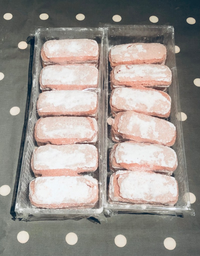 I admit I’d be quite curious to try the rose biscuits with a glass of champers but it seems unduly decadent to splash out on a bottle purely to dunk a Reims biscuit in it, especially in this era of anxiety about rising living costs. As you’ll see from the description on the box, a second more affordable use for the biscuits is in a well-known French dessert a bit like an Eton Mess called a Strawberry Charlotte. And for any regular readers struck by the similarities: the rose biscuit could well be the blushing first cousin of the Lady Finger or Boudoir Biscuit, the patron biscuit of the Tiramisu…