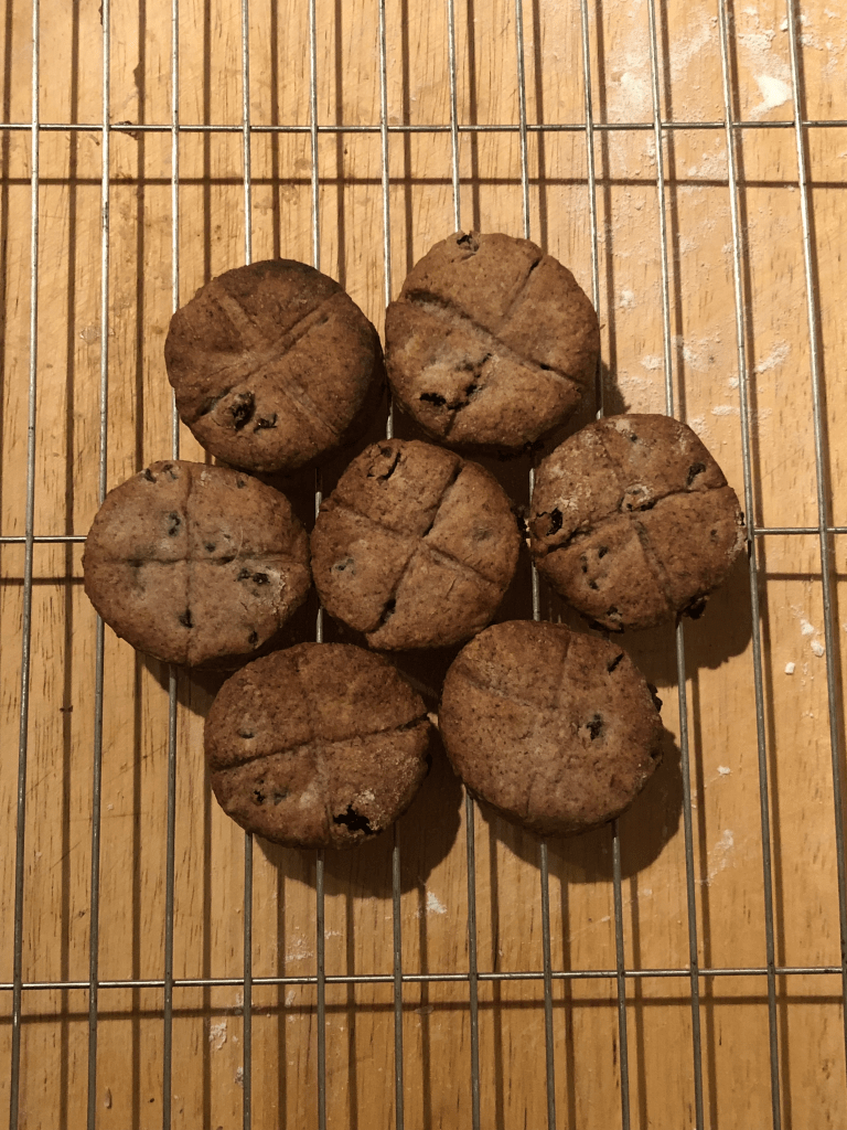 The Brockhampton estate had provided visitors with a medieval recipe for Soul Cakes which I thought I’d try on returning home to Peckham. It looked authentic as there were no measurements (always frustrating to the modern cook) so I went for pastry-like ratios of butter to flour, added the more dubious ingredients along with currants, ground cloves and nutmeg and some mixed spice in the absence of mace (another form of nutmeg). Wine and ale were included, with wine seemingly used as a mixer so I ended up using some cheap Merlot to bind it, thinking afterwards that white wine might have been better as the display cakes didn’t have the reddish tinge of mine. I used a thin wine glass to press them into rounds and marked them with a cross as instructed before trying them in the oven at Gas Mark 6 for about 12-15 minutes. They emerged pretty well cooked but didn’t seemed to rise at all in spite having a packet of dry yeast in them, but the recipe had required ‘cold’ butter and gave no time for proving. To be honest they’re tastier than I expected, even if they do taste a little like pastry soaked in mulled wine, and I look forward to offering them to any puzzled Trick-or-Treaters this weekend.