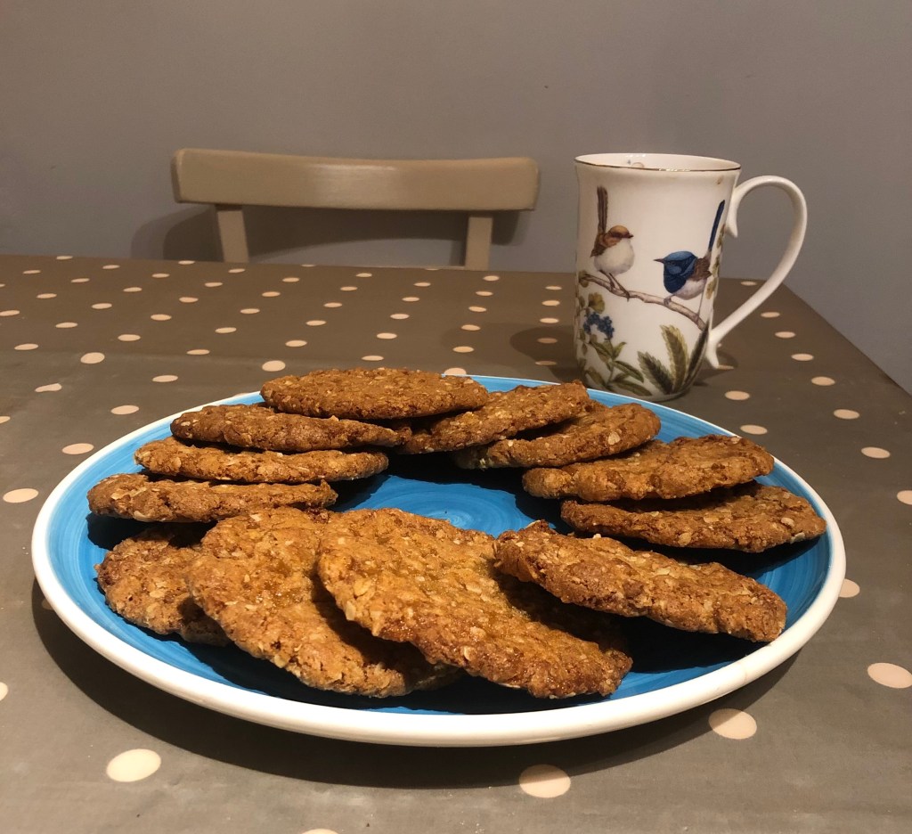 At first I had the bright idea of buying some Anzac Biscuits locally for this entry. My nearest Blackbird Bakery – a bit of a South London legend – used to sell them but somehow between this Anzac Day and the last time I checked they’d decided to remove them from their baking range. So I was left to find the best recipe I could on the internet and have a go at making a few myself — and I’m so glad I did because they were delicious. Besides being a perfect quick-bake, easy-peasy-to-make biscuit. Here’s a photo of the results. (You’ll be pleased to know I restricted myself to two in one sitting.)